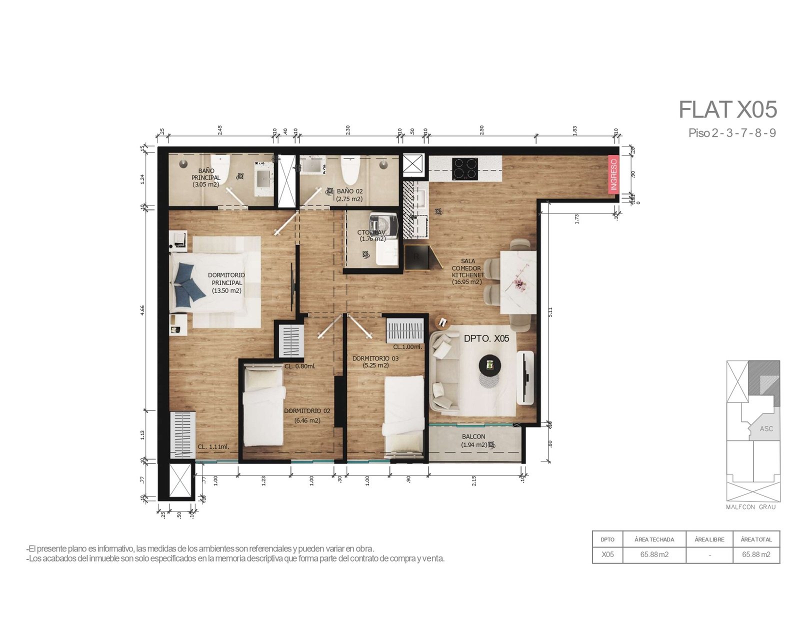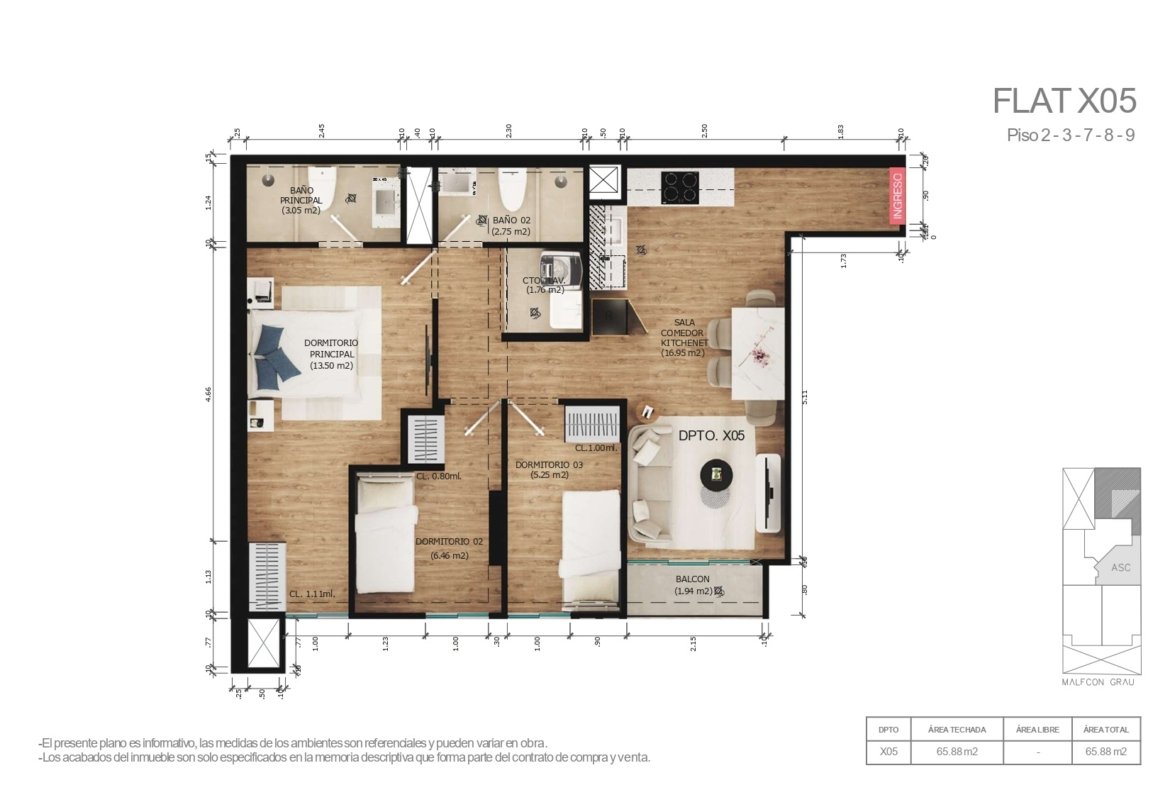 • Área total 65.90 m²