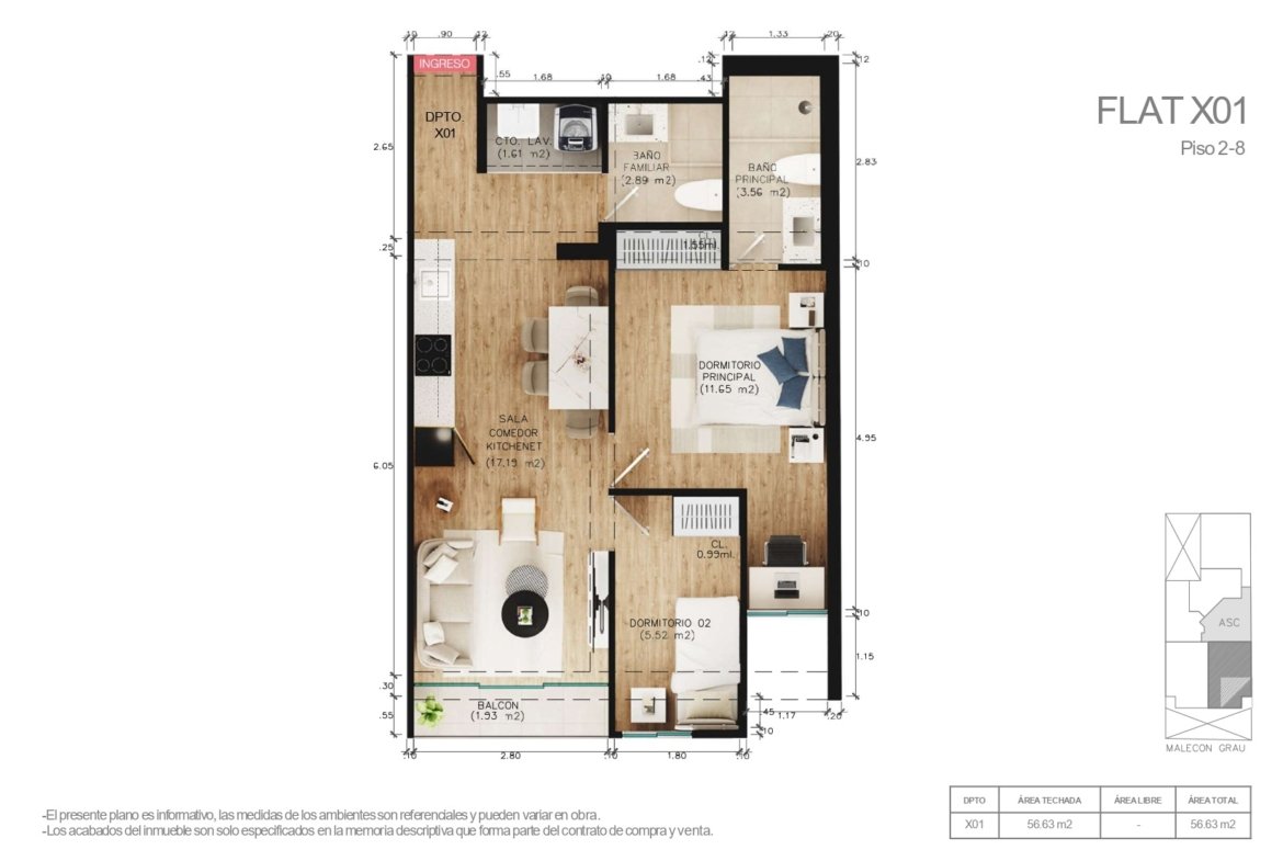 Av. Malecon Grau, Lima, Perú Ver detallesDepartamento 2 Dormitorios 57.3 m² en Chorrillos – Mar de Grau