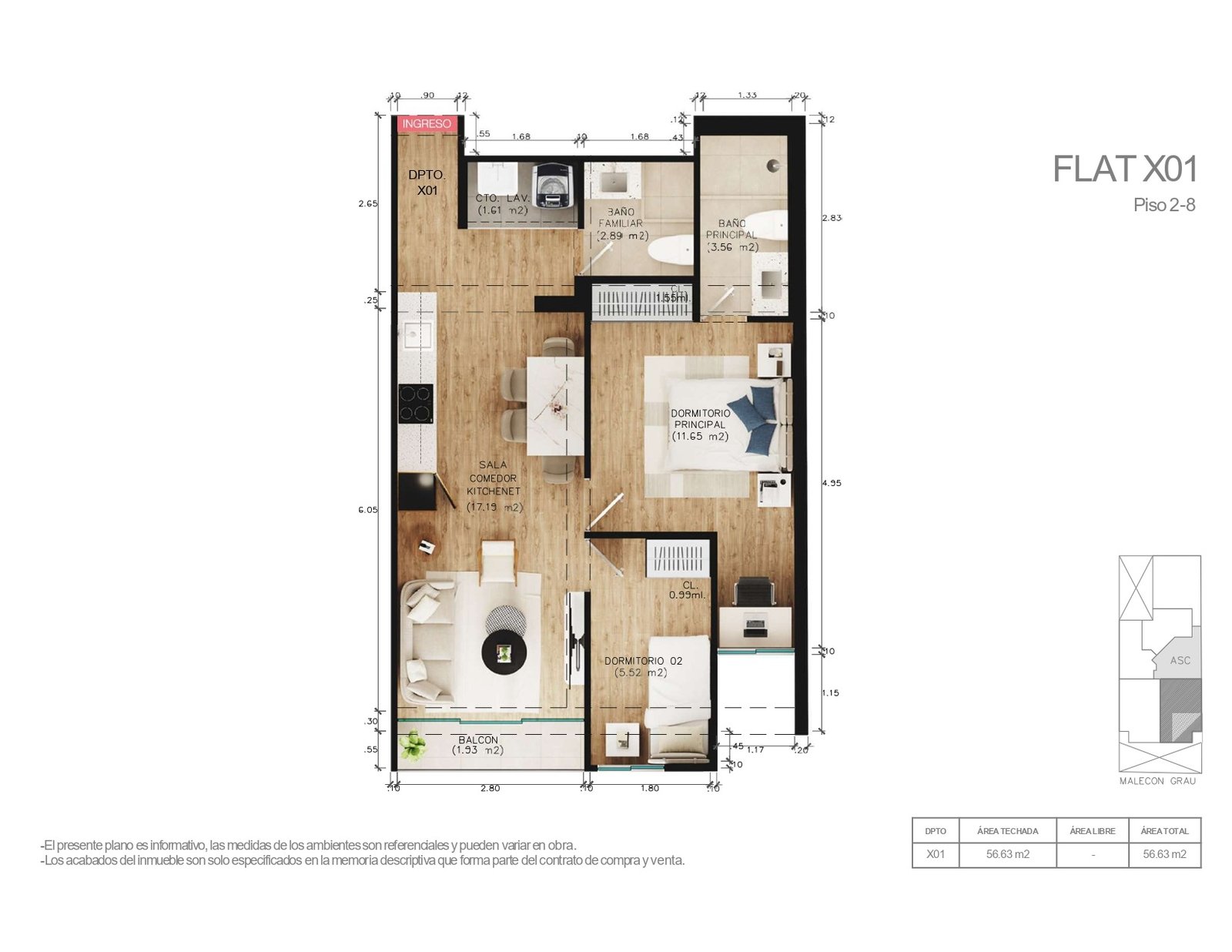 | Modelo X02 disponible en piso 2, 3 y 4 | Departamento | S/581,189 | 2 | 2 | 57 m² | En Construcción |